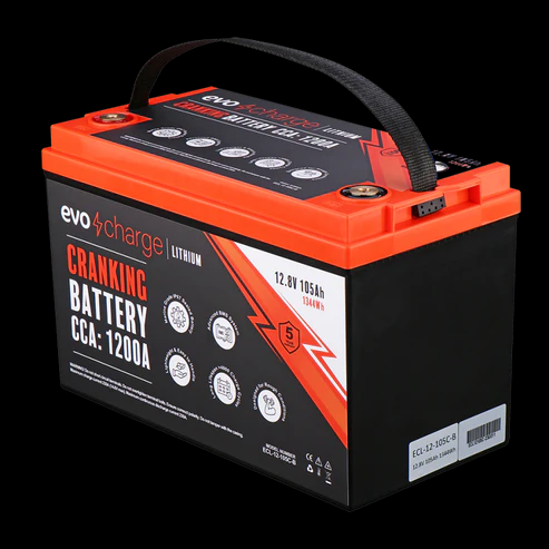 EvoCharge 12V 105Ah LiFePO4 Lithium Battery (Cranking)(12,8V 105Ah- Bluetooth)